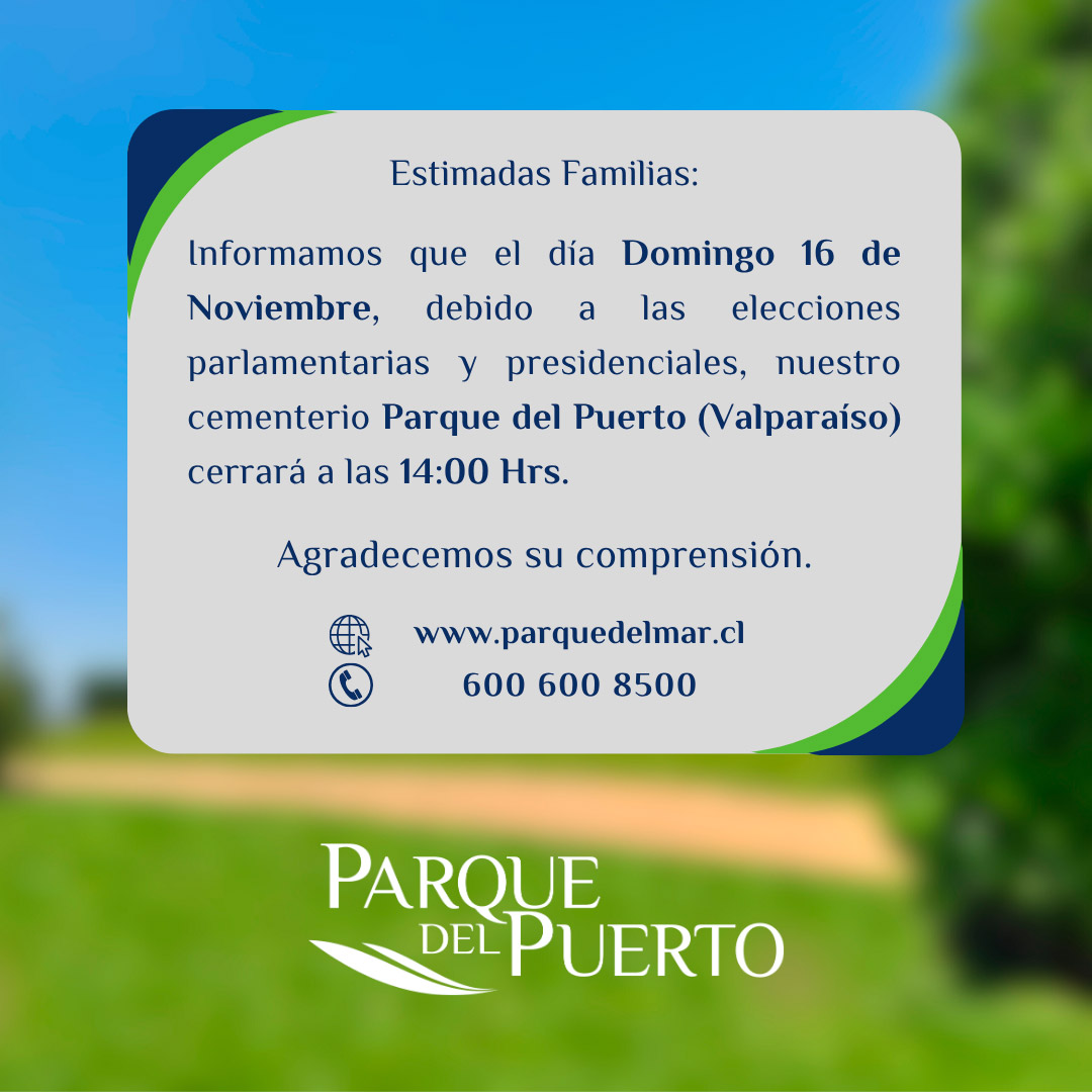 En el año 2002, se inaugura el Cementerio PARQUE DEL PUERTO en la ciudad de VALPARAÍSO, con el propósito específico de atender a las familias de esta comuna, con estándares idénticos a los del PARQUE DEL MAR CONCON.
